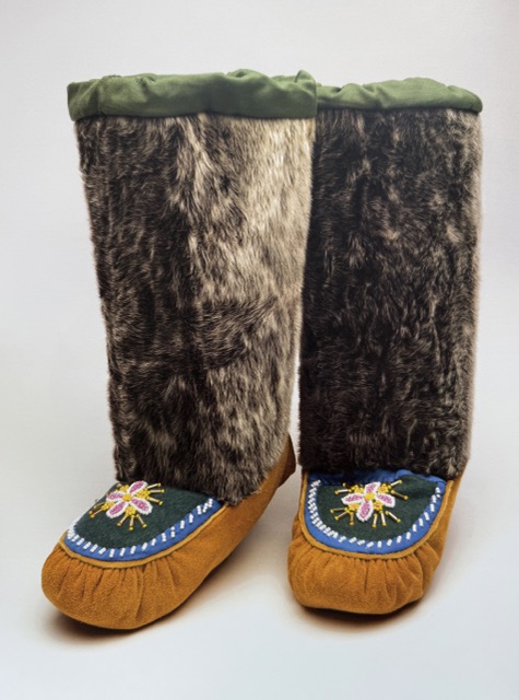 Andrea Flowers, Kamiik, 2015, untanned sealskin, beading, 30.5 x 17.8 x 30.5 cm. Photo: The Rooms.