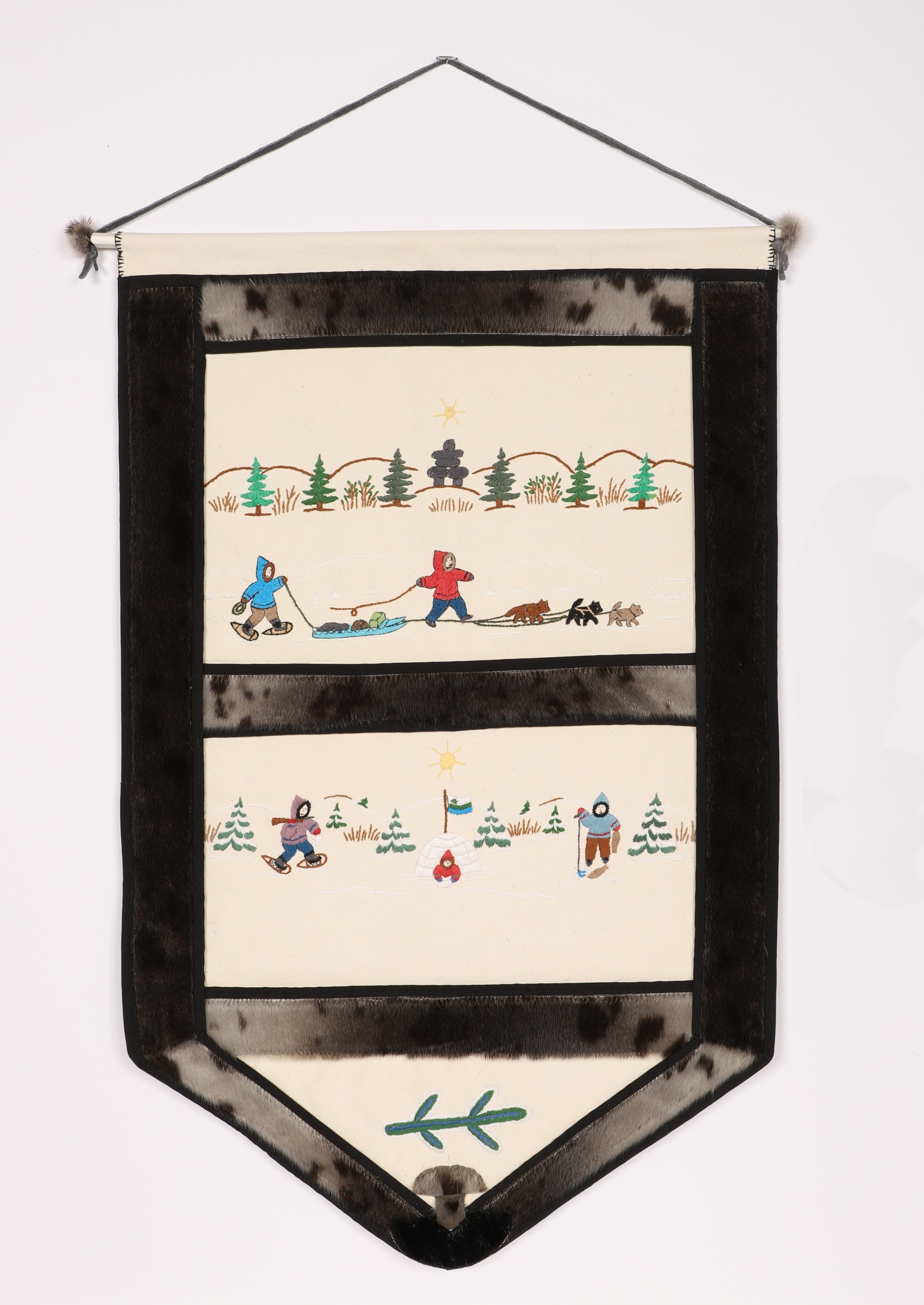 Nellie Winters (b. 1938), is a master seamstress, one of the most respected artists in her community, and a matriarch of a four-generation family with many talented artists and craftspeople living throughout Labrador. Winters began embroidering and making Inukuluk (Inukuluit) figures as a child in boarding school. After finishing school, she refined and diversified her skills as an artist, remaining self-taught. Her work has been exhibited in multiple exhibitions  and showcases and is collected by museums and private collectors throughout Canada and internationally. While she is an expert in several traditional art forms, in her practice Winters thrives on learning new techniques and produces a range of objects in a variety of materials. These include grasswork,